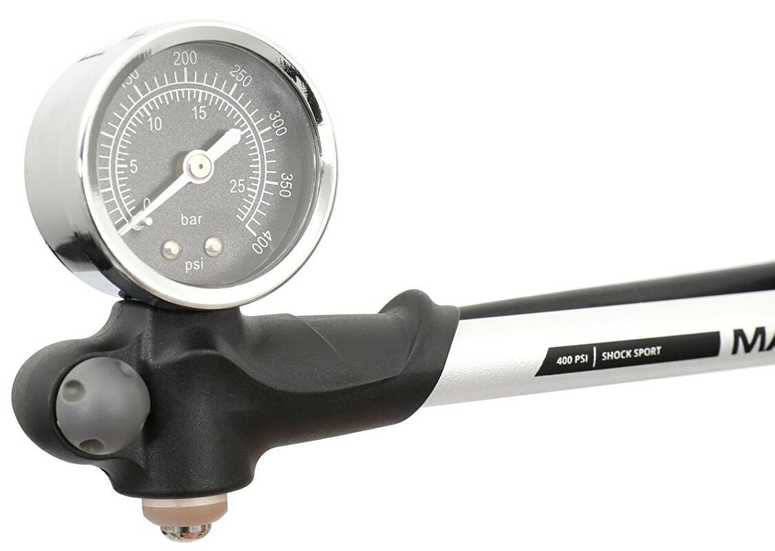 Hustilka na tlumiče a odpružené vidlice MAX1 Shock Sport vybavená upouštěcím ventilem, díky kterému můžete velice citlivě nastavovat požadované tlaky. Přesný a přehledný manometr měří tlak v jednotkách bar a psi.